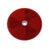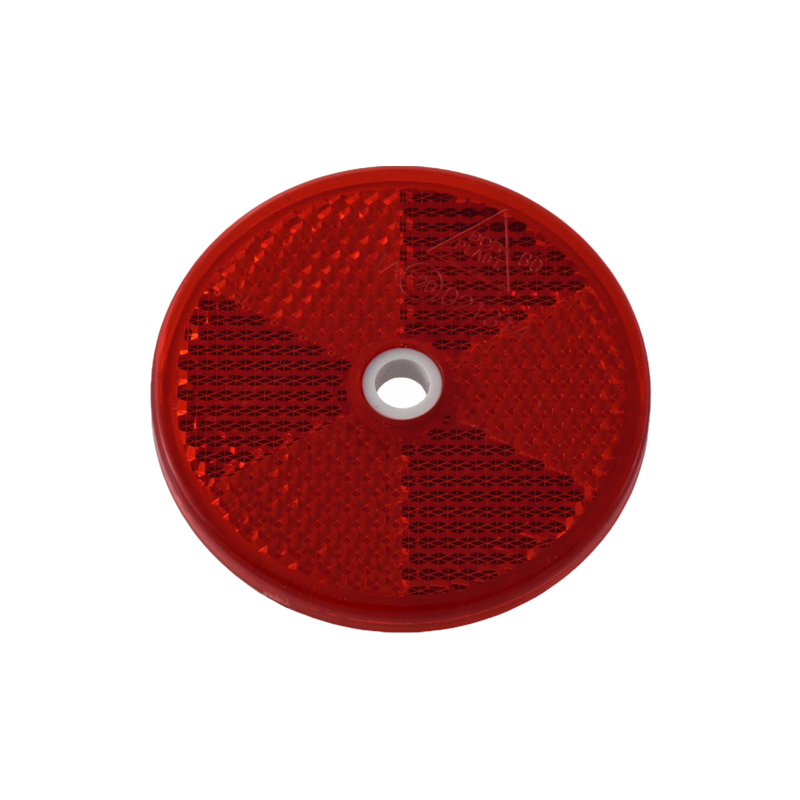 Okrúhla červená odrazka s priemerom 60mm s montážnym otvorom. Má schválenie E20 IA.