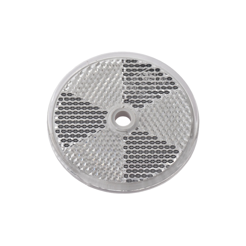 Okrúhla biela odrazka s priemerom 60mm s montážnym otvorom. Má schválenie E20 IA.