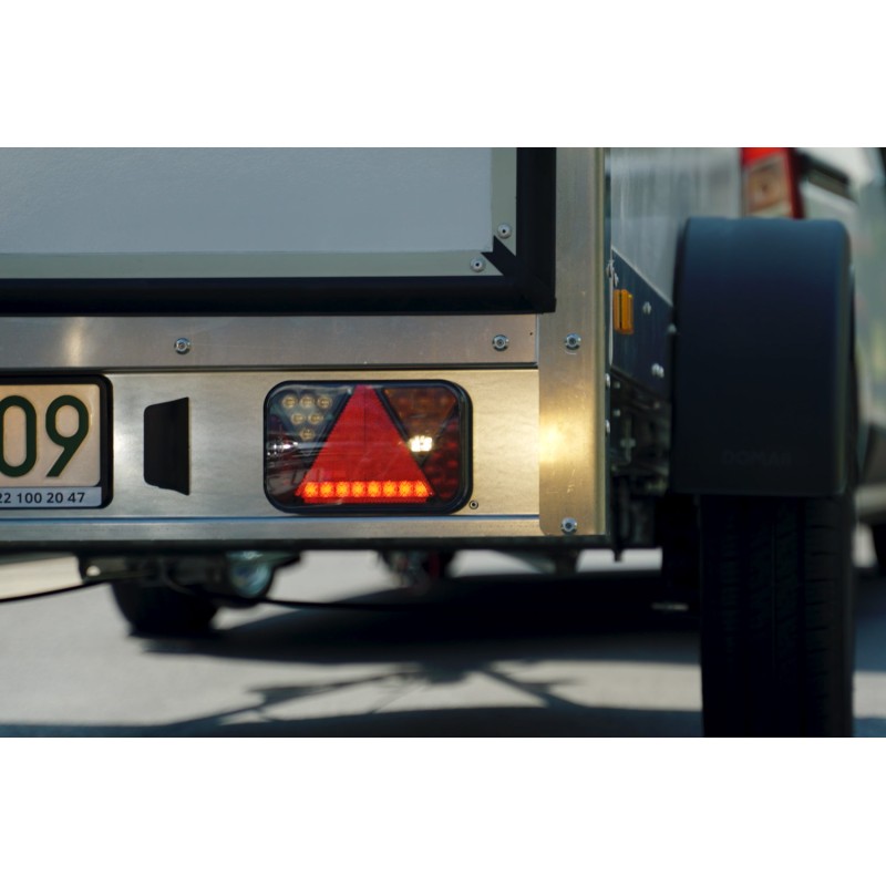 Univerzálne zadné pravé LED svietidlo s 12V reflexným trojuholníkom. 6-funkčné s osvetlením ŠPZ s 5-pinovým bajonetovým konektorom.