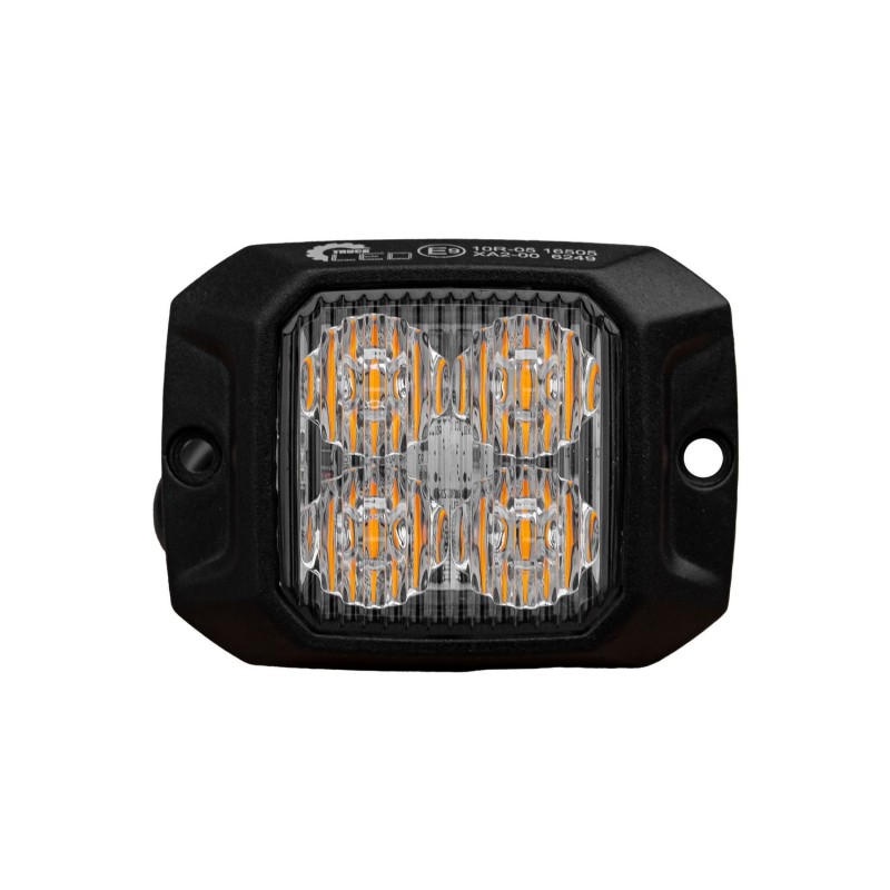 Klasická výstražná záblesková lampa. Difúzny polykarbonátový reflektor pozostáva zo 4 samostatných šošoviek pre 4 LED žiariče.
