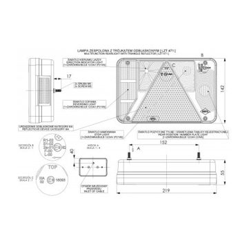 Multifunkčné zadné svietidlo s trojuholníkovým reflektorom LZT 471 ľavé 12 / 24V