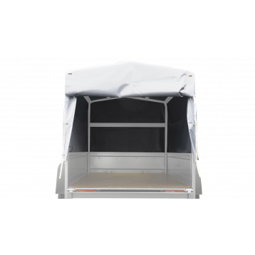 Plachta je vybavená otváracou zadnou časťou , ktorá uľahčuje nakladanie a vykladanie tovaru z prívesu. Aby ste sa dostali k prepravovanému tovaru, nemusíte sňať celú plachtu. Stačí zdvihnúť dva popruhy, ktoré chránia zadnú časť plachty pred nežiaducim nadvihnutím počas jazdy alebo zastavenia. Potom už len stačí túto časť zrolovať a nasadiť na horný nosník rámu. Týmto spôsobom získate ľahký prístup do vnútra prívesu aj bez toho, aby ste museli otvárať dvere batožinového priestoru. Ide o veľmi pohodlné riešenie, ktoré sa vám bude hodiť pri každej ceste.